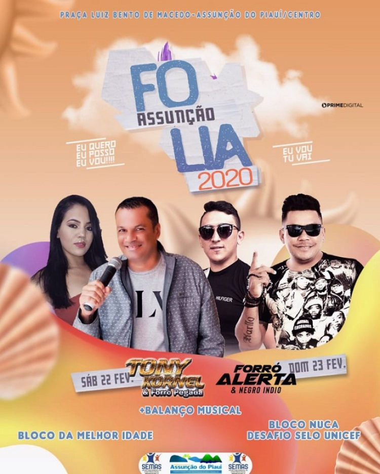 A Secretaria Municipal de Assistência Social de Assunção do Piauí, que tem à frente a Secretária Francisca Alves “Quinha Alves” - através do Serviço de Convivência e Fortalecimento de Vínculos (SCFV) realizará, nos dias 22 e 23 de fevereiro, Carnaval da melhor idade e Desafio 7 do Selo Unicef - Promover o direito à saúde sexual e saúde reprodutiva envolvendo os adolescentes do NUCA.