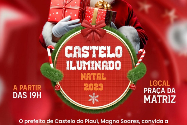 O evento natalino 2023, Castelo Iluminado, acontece no dia 14 de dezembro, a partir das 19h, na Praça da Matriz, com a chegada do Papai Noel, espaço para fotos com o Papai Noel, sorteio de 6 bicicle