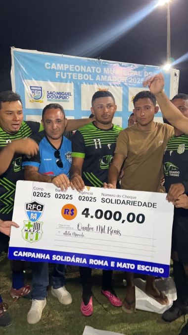 Encerrando a noite em um gesto nobre, as equipes finalistas Roma FC e Mato Escuro decidiram doar R$ 4 mil de suas premiações ao atleta Marcelo, que sofreu uma grave lesão no joelho enquanto defendia a Seleção Sãomiguelense e necessita de cirurgia. A atitude foi aplaudida por torcedores e autoridades, reforçando que o verdadeiro espírito do esporte está na solidariedade e no companheirismo.O Campeonato Municipal 2025 reafirma São Miguel do Tapuio como referência no incentivo ao esporte amador, revelando talentos, fortalecendo comunidades e promovendo cidadania através do futebol.