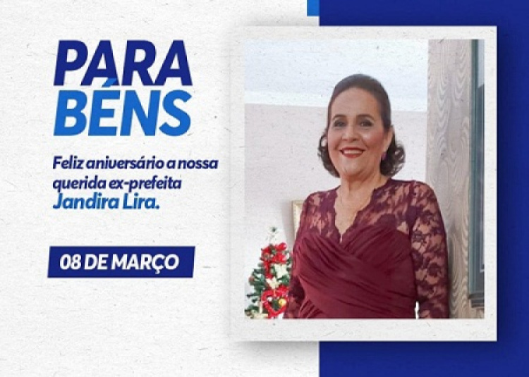 "Hoje, quarta-feira, 8 de março de 2023, Dia Internacional da Mulher, é uma dia mais do que especial, pois, também, é o aniversário de uma pessoa querida – amiga dileta, Sr.ª Jandira. De forma especial, quero parabenizar minha grande amiga JANDIRA LIRA, pela passagem de seu aniversário, que a mesma, possa celebrar a sua vida com toda as alegrias e felicidades possíveis. Te desejo o mundo de coisas boas e positivas com os mais lindos presentes, além de uma saúde forte para que você possa continuar vivendo feliz, muito sucesso e muita felicidade, porque você merece! Feliz aniversário, e aproveite demais o seu dia, porque a pessoa mais importante hoje é você".