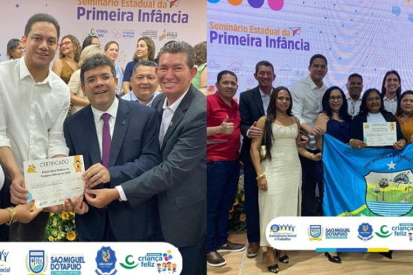 Em Seminário Estadual da Primeira Infância no SUAS/Criança Feliz, realizado nesta terça-feira (19), com a Premiação das Boas Práticas da Primeira Infância no SUAS a 10 municípios.