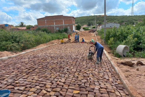 Nesta nova fase estão sendo construídos oito mil metros quadrados em pavimentação poliédrica.