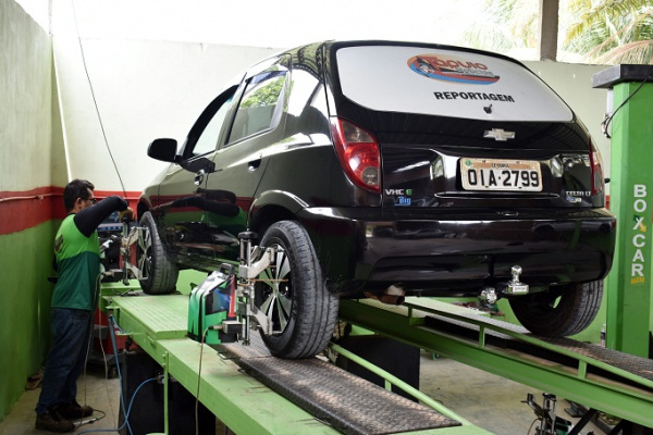 Sistema moderno de equipamentos para balanceamento e alinhamento (computadorizado).