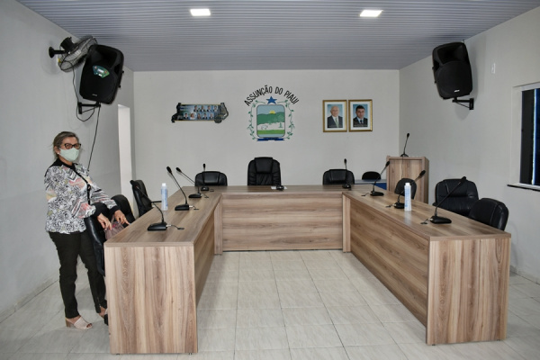 O novo sistema de som tem microfones na mesa de cada vereador.