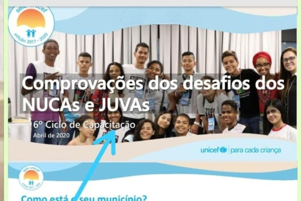A adolescente Raissa Silva, do NUCA local, foi inserida em foto coletiva da capa-convite do 6º Ciclo de Formação do Unicef.