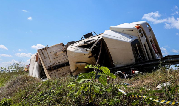 O acidente aconteceu por volta das 12h no bairro Jardim Europa quando o veÃculo foi fazer a rotatória que dá acesso ao Rodoanel.