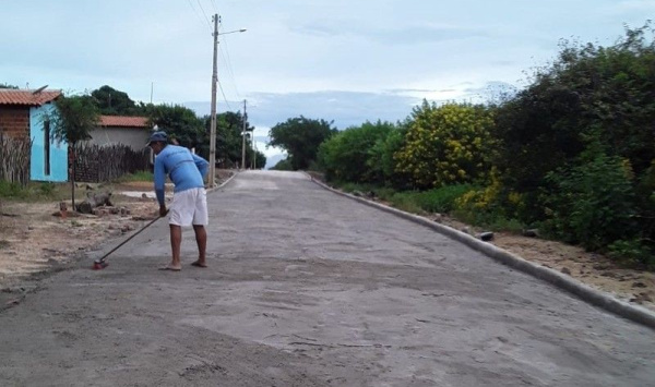 Fase de conclusão das obras de pavimentação de 3.800 metros quadrados em paralelepípedos na comunidade Cachoeira, zona rural de São Miguel do Tapuio.