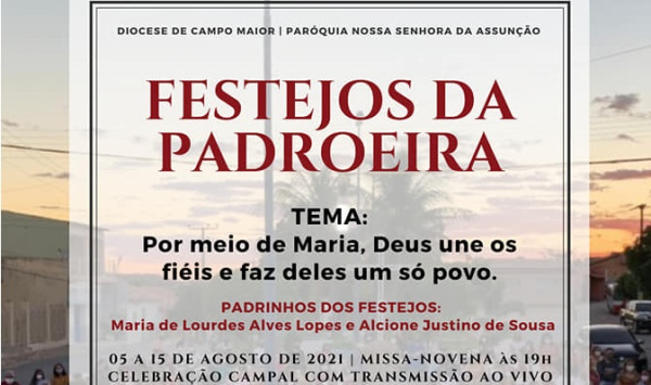 Todas as Celebrações serão realizadas em frente à Igreja e seguindo os protocolos de prevenção à Covid-19.