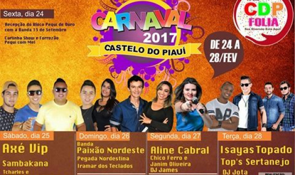 Serão cinco dias de festa, alegria e muita diversão. Começando na sexta-feira, dia 24, com a recepção do Bloco Pequi de Ouro, que volta a fazer seu tradicional desfile de rua.
